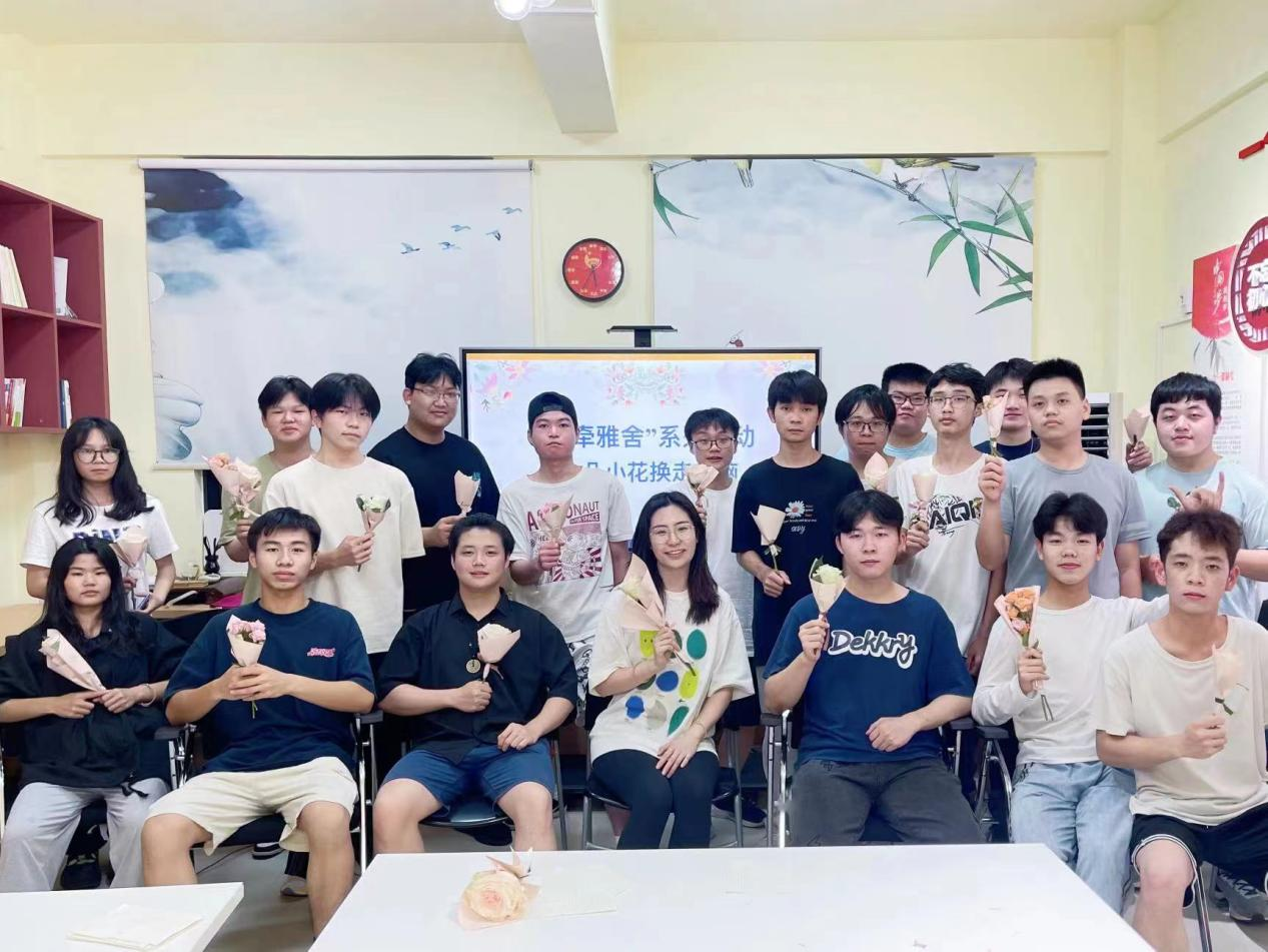 广西建院4月24日讯(设备与环境学院 文/毛森森 吴颖霞 图/毛森森)为帮助大学生树立心理健康意识,设备与环境学院学生公寓党建工作室举办“情牵雅舍”系列活动之“一朵小花换走烦恼”,此活动由辅导员毛森森老师主...