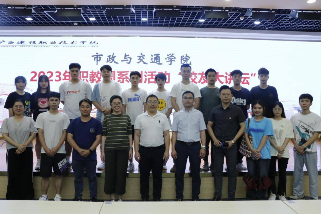 广西建院5月17日讯(市政与交通学院 文/梁璞璞 图/林艳)5月16日下午,市政与交通学院在四教二楼报告厅举办2023年职教周系列活动——校友大讲坛。首页道路桥梁工程技术专业2007届校友黄剑锋、2017届校友韦武兴应...
